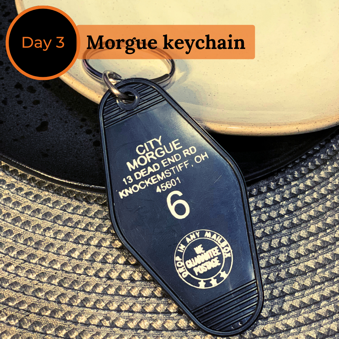 This vintage style motel key fob, featuring the City Morgue, is sure to knock 'em dead this Halloween. Printed in-house in Bradenton, FL.