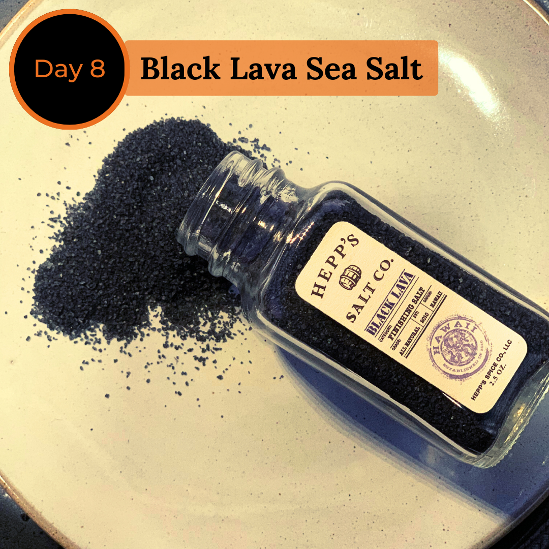 Add a brilliant touch of black to any October meal with this Hawaiian lava salt. Infused with activated charcoal, it can be used as a decorative condiment for any occasion. Especially good for salads, eggs, drink rims, and tomatoes.